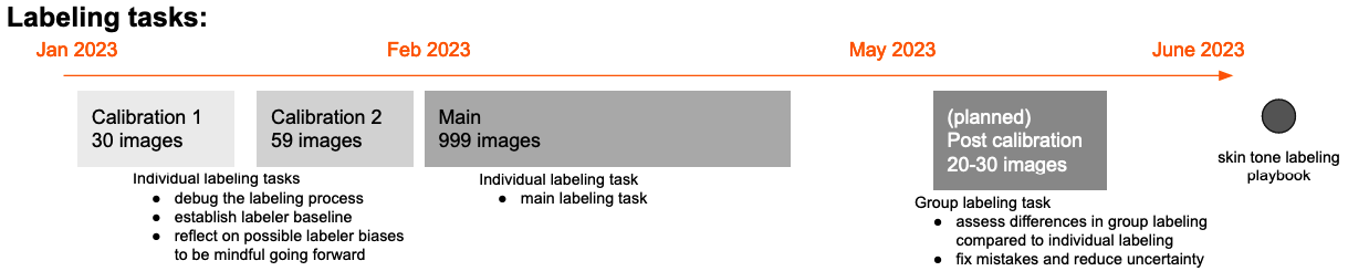 The overall labeling work was broken down into four sequential tasks described in the following timeline figure: